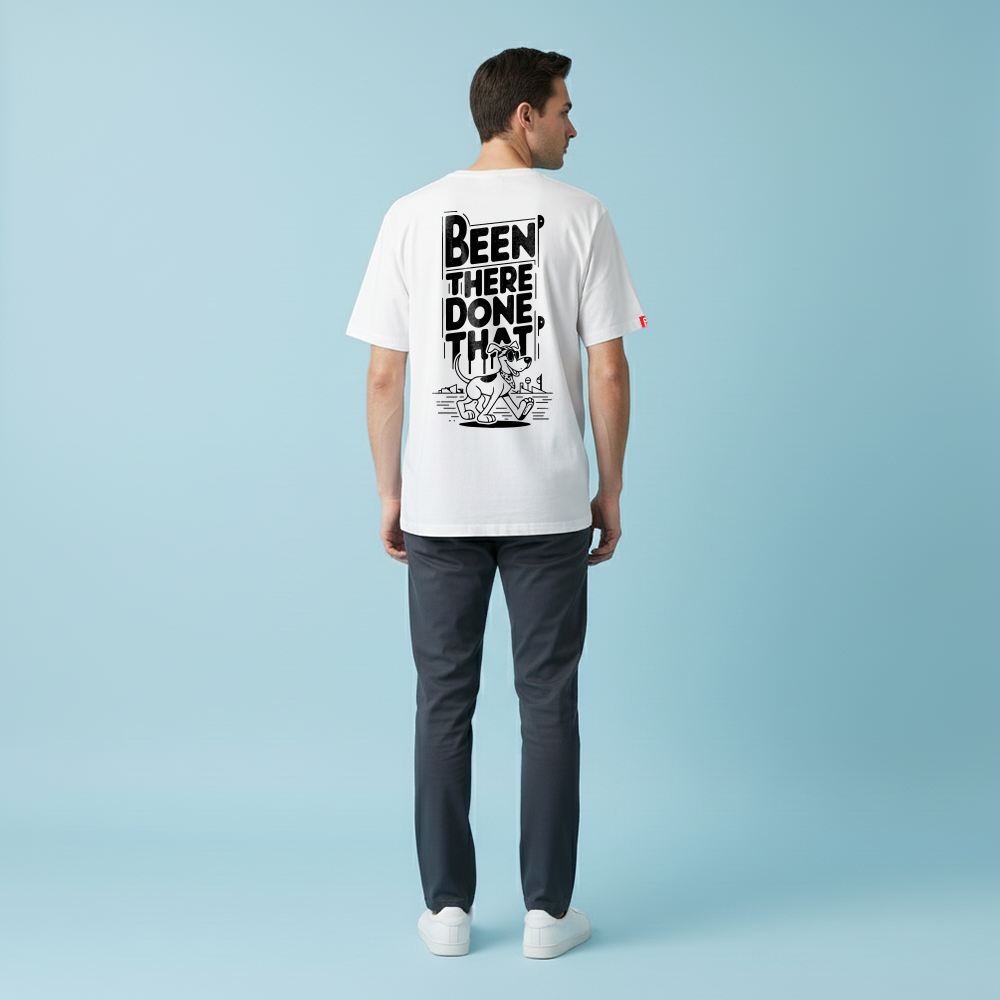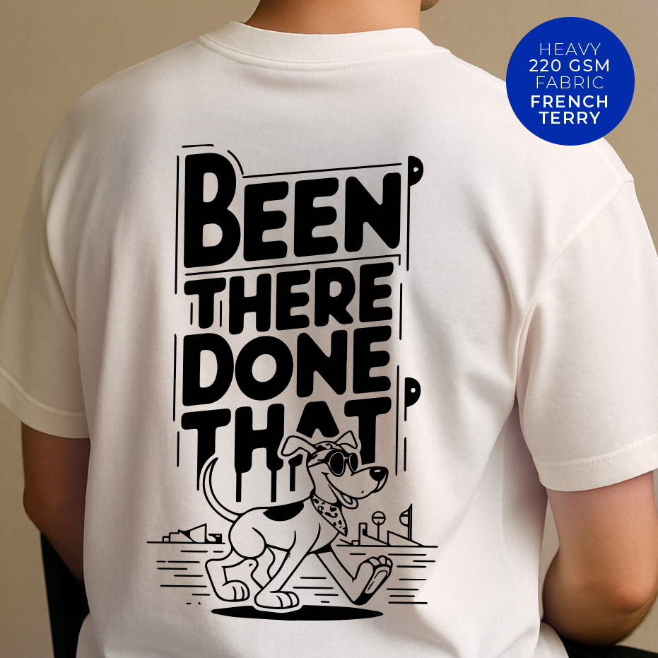 Crafted from heavy 220 GSM French Terry cotton, this oversized white T-shirt offers premium structure, breathability, and all-day comfort. Perfect for casual styling, weekend moods, or anyone who lives life with a “been there, done that” attitude.