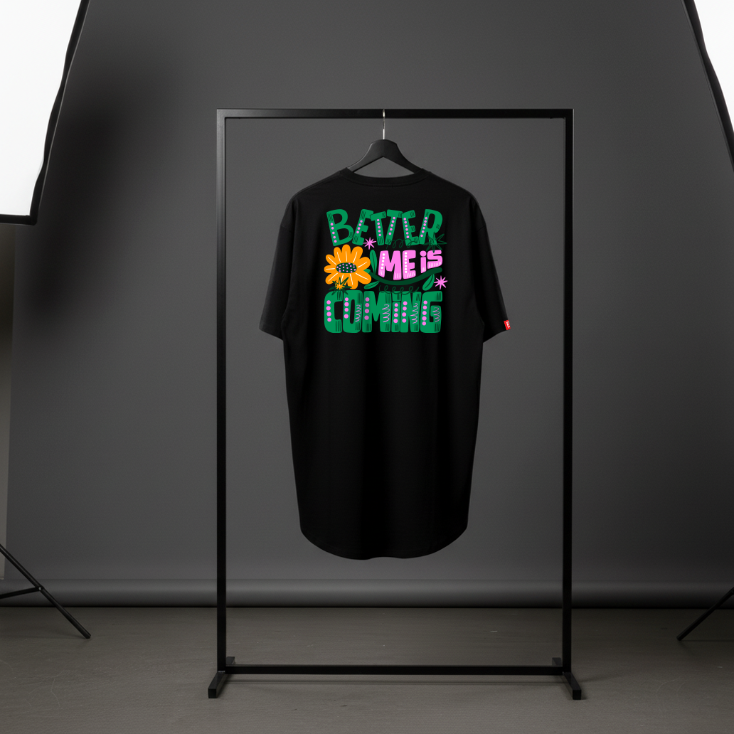 A vibrant motivational graphic tee designed for anyone on a journey of growth. Featuring bold, hand-drawn typography with playful floral elements, this black oversized T-shirt is made using premium 220 GSM French Terry fabric, giving it a luxe feel, perfect drape, and long-lasting comfort.