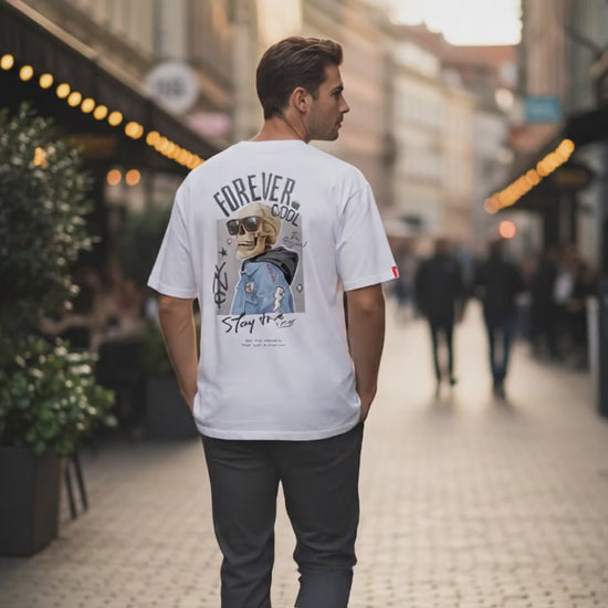 A bold street-style graphic tee featuring a sunglasses-wearing skeleton in a denim jacket, celebrating individuality and fearless attitude. Crafted in heavy 220 GSM French Terry, the tee delivers a premium oversized fit with all-day comfort. Perfect for those who live original and dress unapologetically.